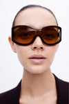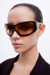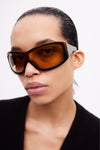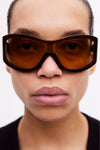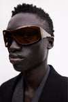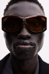 Exclusively on porttanger.com and made in collaboration with Ice Studios as part of our Visited by experiences, the Nunny is inspired by the style of Renell Medrano's mother and a vibrant Dominican color palette. This unisex frame features an enveloping wrap around mask made contemporary by a sharp silhouette, and is available in eight distinct acetates and six lens colors.
