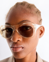 Nazim derives its name from the Arabic word for poet or author, though it can also describe one who brings a sense of order. This frame has a broad silhouette with flowing lines that highlight its distinct geometry. Part of our seasonal Jilan collection, the Nazim features a mask frame and is available in four distinct acetates and four lens colors.